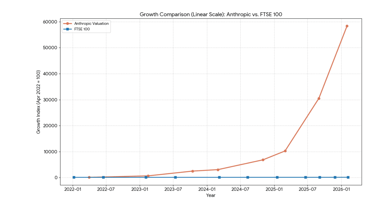[ If in an alternative universe, Anthropic was a UK company it would be the most valuable company in the UK by a considerable way. Its valuation of £270billion would be almost 30% bigger than either HSBC or AZ, the present biggest UK companies and this is for a 5 year old company that in 2023, with virtually no revenue, was ridiculed for raising VC money at valuation of around $4 billion dollars. Makes you think what Deepmind would be worth if it was a UK standalone company but also shows why investing in the next generation of Frontier Labs, those with the talent and focus to take on Anthropics crown, at so called ludicrous valuations, may in fact be very good investments- even as a portfolio hedge].